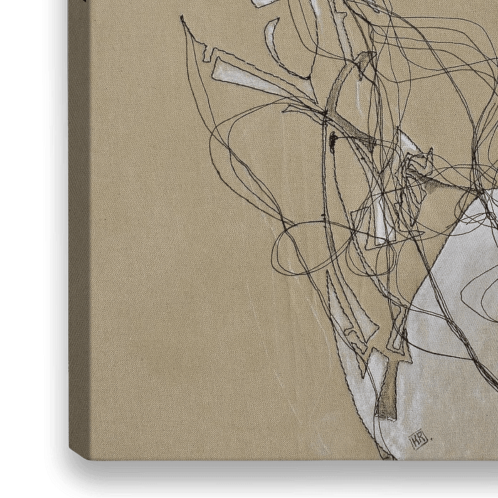 ein figuratives Werk aus Draht, Kohle & Amp; Acryl auf Leinwand.