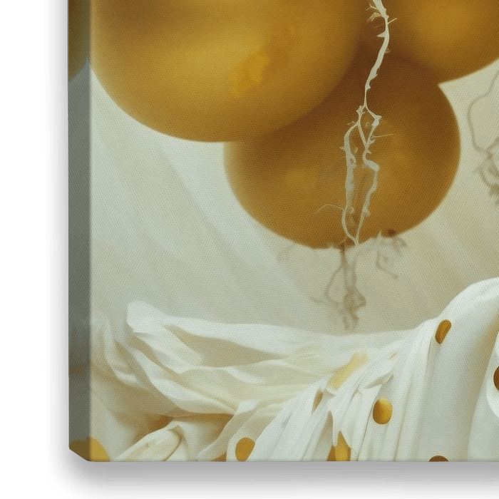 Eine weitere Party:) Fantasieporträt einer Frau in einem Partykleid mit Luftballons. Mischtechnik in Weiß-, Creme- und Goldtönen.