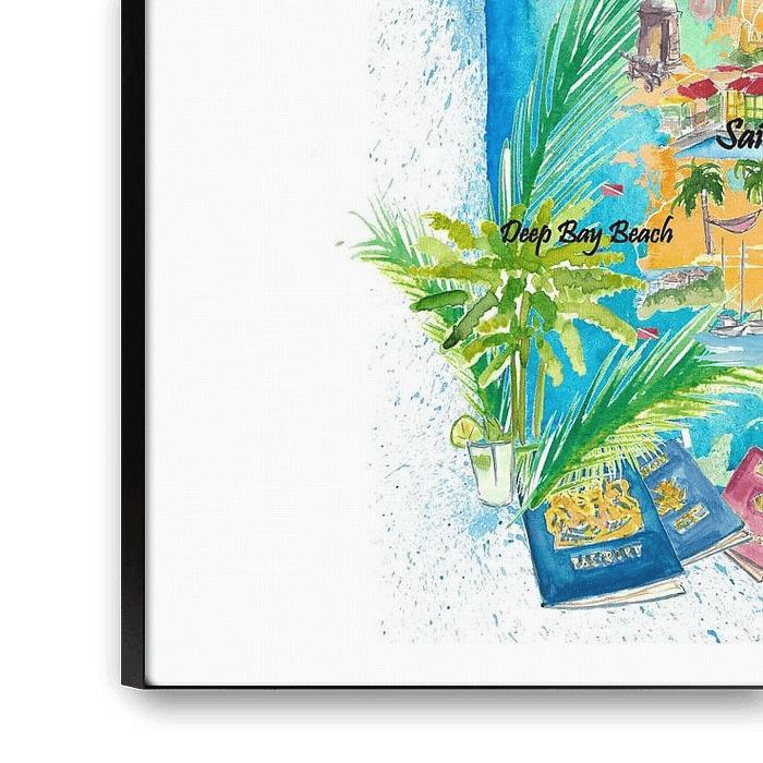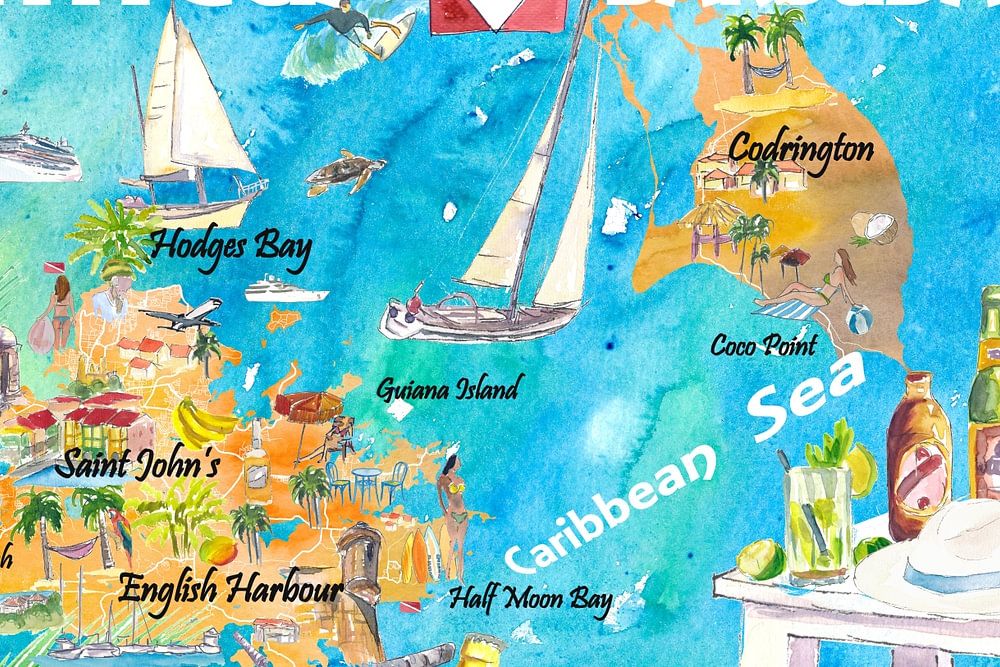 Antigua Barbuda Antillen Illustrierte Karibik Reisekarte mit Highlights der Westindischen Inseln Traum