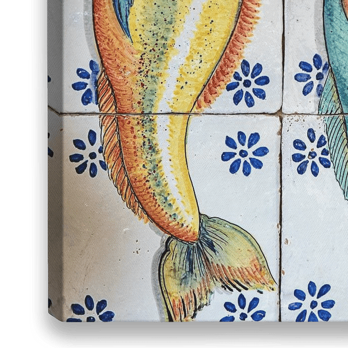 Französisches antikes Fliesentableau mit Fischen