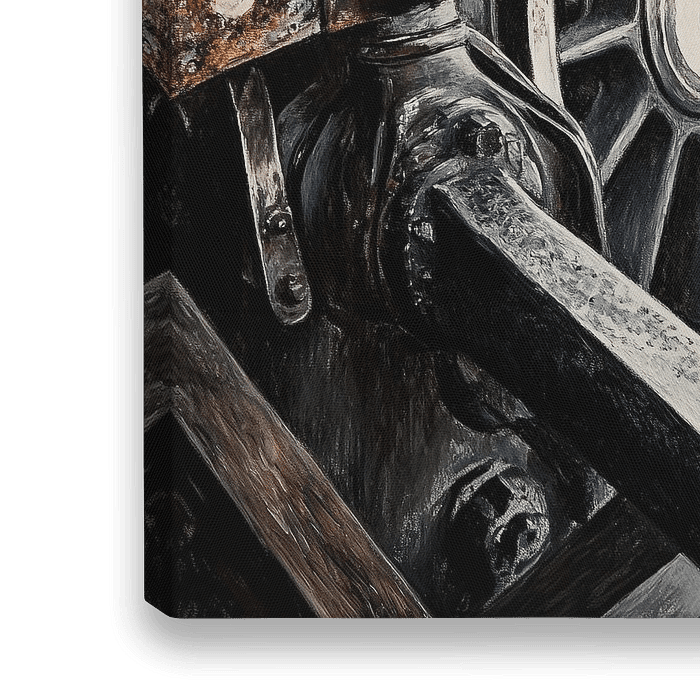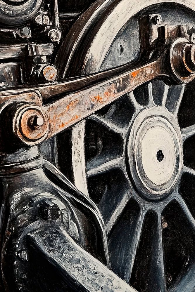Ein faszinierendes Zusammenspiel aus Metall und Mechanik: Die mächtige Schwungscheibe, umgeben von robusten Zahnrädern und verrosteten Bauteilen, erzählt Geschichten von Kraft und Präzision. Ihre schlichte Eleganz fällt ins Auge, während das Zusammenspiel der Linien ein Gefühl von Bewegung und Energie vermittelt. Ein beeindruckendes Zeugnis technischer Ingenieurskunst und industrieller Ästhetik.