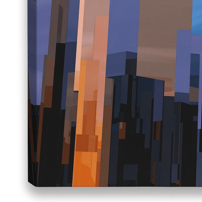 Das abstrakte Kunstwerk fängt die Essenz einer modernen Stadtlandschaft ein. Die geometrischen Formen, die an Hochhäuser erinnern, sind in einer harmonischen Farbpalette…