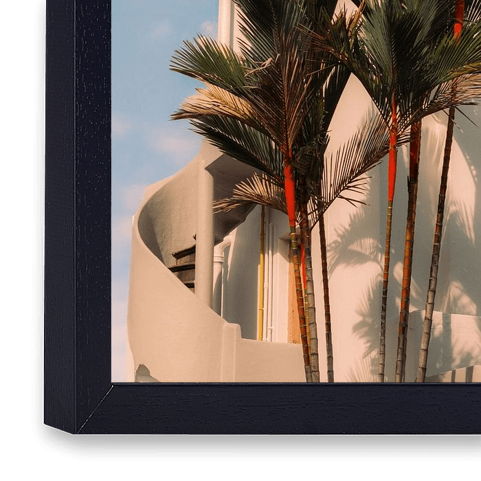 Bestelle dieses Art Deco-Wandbild Art Deco in den Tropen: Palmen und Architektur im Morgenlicht von NZME Photography als Reproduktion auf Leinwand, Alu-Dibond, als Poster, Fototapete oder Acrylglasbild.