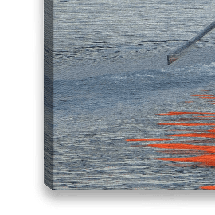 Fotomontage - Digitalart, auf der Donau, Schiff, Passagiere, Transport, Wassertransport, Wasseridylle, Roter Schirm, Regenschirm, Sonnenschirm, asiatisch, asiatischer Stil, blaue Donau, Donauwellen, rot, Wasserspiegelung, ZEN, spirituell, Fengshui, Japanese, rot, Wasser, Trend maritim blau, Motivation, China, Dschunke, Segelschiff, Ruderboot