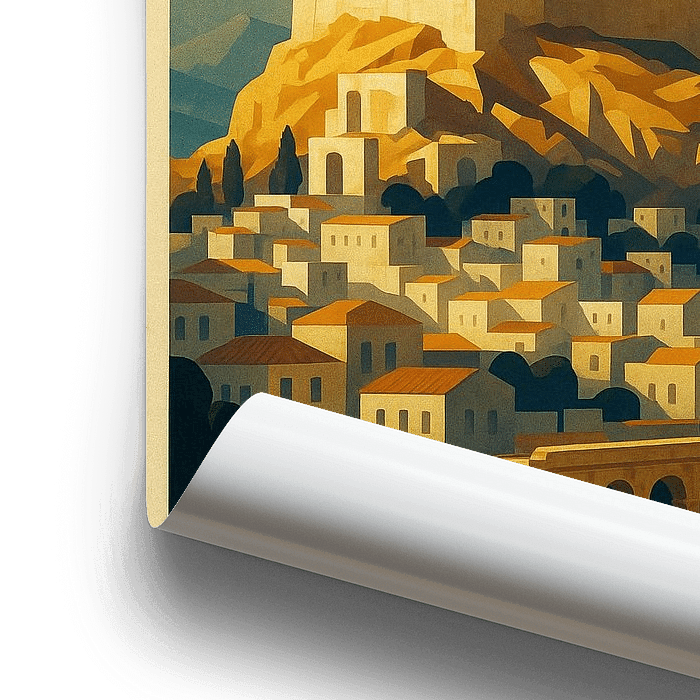 Athen gilt als die Wiege der Demokratie, der Philosophie und der klassischen Kunst, und dieses Poster fängt diesen Geist auf kühne, moderne Weise ein. Die Harmonie zwischen stilisierter Architektur und dramatischer Beleuchtung macht dieses Werk sowohl zeitlos als auch modern. Perfekt für Reisende, Geschichtsliebhaber und Bewunderer der griechischen Kultur, verleiht dieses Wandbild jedem Raum Tiefe und Raffinesse. Ob im Wohnzimmer, im Arbeitszimmer oder an einer Galeriewand, es erinnert täglich an die Rolle Athens als Leuchtturm menschlicher Kreativität und Widerstandsfähigkeit.