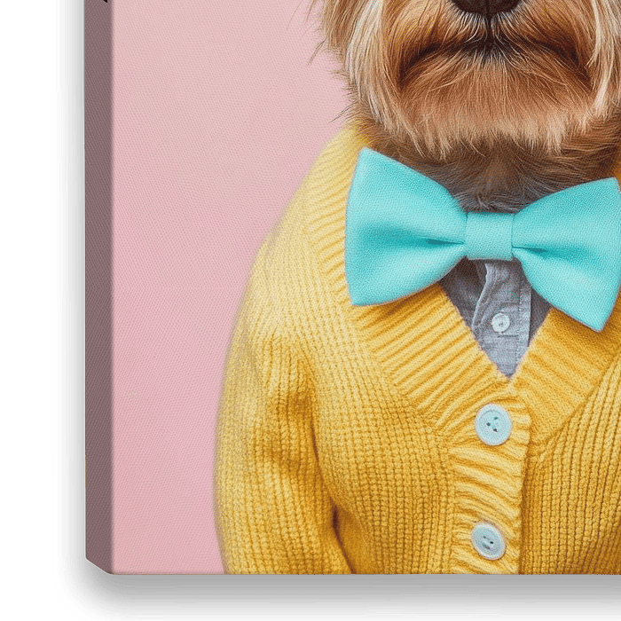 Mit seinem schick gestreiften Pullover und der stilvollen Fliege strahlt dieser Australian Terrier eine charmante Eleganz aus. Die spitzen Ohren und das glänzende, strubbelige Fell verleihen ihm einen verspielten Ausdruck, während der sanfte Blick das Herz jedes Betrachters erobert. Ein Hund, der sowohl Modebewusstsein als auch…