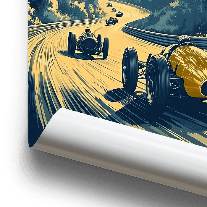 Bestelle dieses moderne Wandbild Autorennen im Vintage Stil von Skyfall als Reproduktion auf Leinwand, Alu-Dibond, als Poster, Fototapete oder Acrylglasbild.