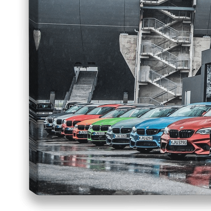 Bestelle das Foto BMW M-Modelle in einer Reihe von Bas Fransen als Reproduktion auf Leinwand, Alu-Dibond, als Poster, Fototapete oder Acrylglasbild.