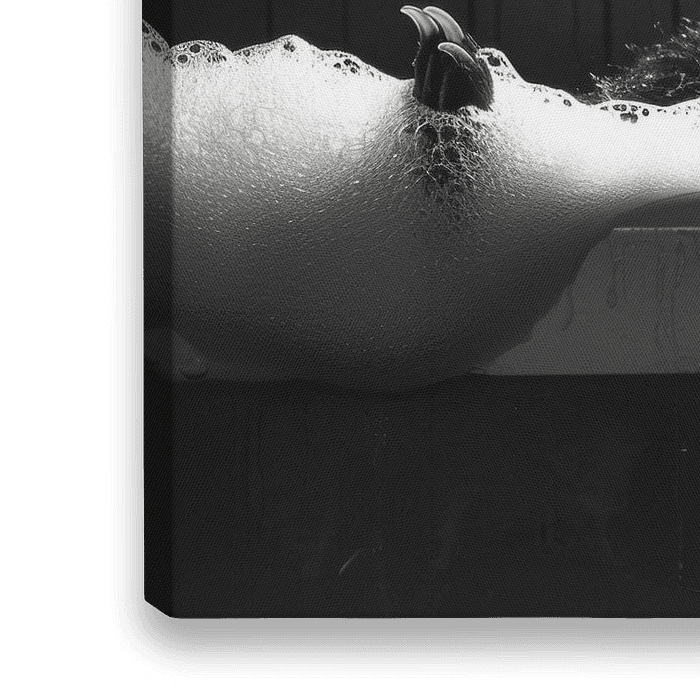 Dieses originelle Badezimmer Bild ist ein echter Blickfang! Mit einem entspannten Bären, der die Ruhe in seiner Badewanne genießt, bringt es Charme und Witz in jedes moderne Badezimmer. Die schwarz-weißen Töne der Fotografie unterstreichen die zeitlose Eleganz, während die Szene selbst unter den lustigen Bildern eine Sonderstellung…