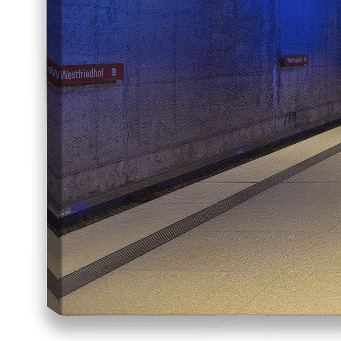 Bestelle das Foto Bahnsteig einer U-Bahn-Station mit leuchtenden Farben von Andreea Eva Herczegh als Reproduktion auf Leinwand, Alu-Dibond, als Poster, Fototapete oder Acrylglasbild.