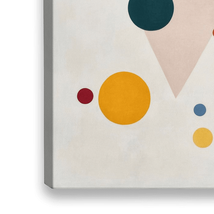 Auf einer schmalen Linie balanciert eine dynamische Figur, die ulkig und kraftvoll wirkt. Mit schwingendem Arm und entschlossenem Blick zielt sie auf die bunten, schwebenden Formen, die wie Gedankenblasen um sie herum tanzen. Die harmonische Komposition aus geometrischen Figuren und leuchtenden Farben verstärkt das Gefühl von Bewegung und Konzentration in dieser surrealen Szene.