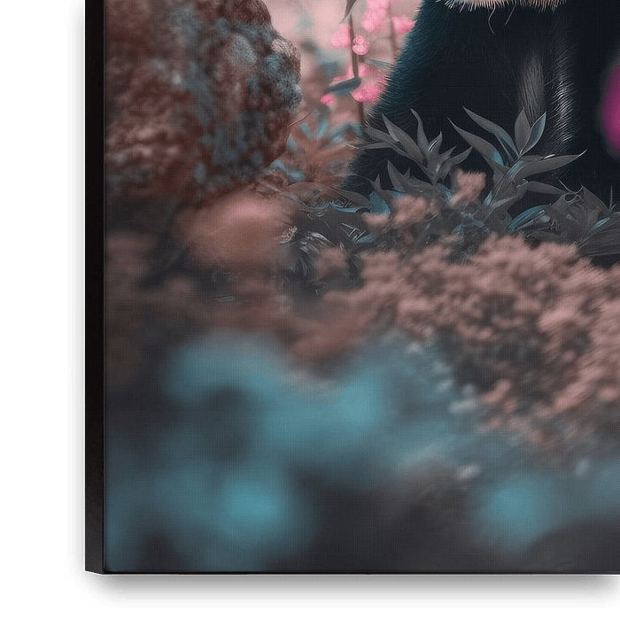 Dieses Kunstbild zeigt ein beeindruckendes Porträt eines Pandas, umgeben von sanften Farben, Blumen und einem schönen Bokeh. Die verträumte Umgebung vermittelt ein Gefühl von Ruhe und Frieden. Das Bild ist minimalistisch und einfach, aber gleichzeitig raffiniert und elegant. Das Bild passt perfekt zu einer modernen Einrichtung und…