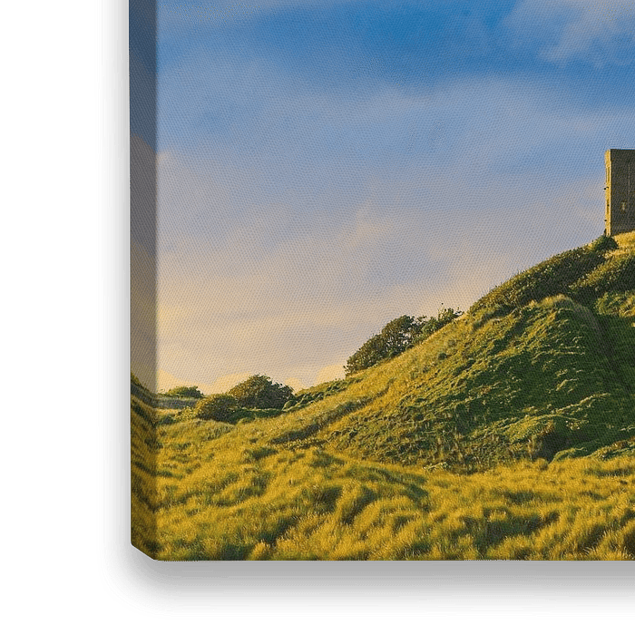An der Ostküste Englands, in der Region Northumberland, versteckt in den Dünen, liegt Bamburgh Castle. Das Foto wurde bei Sonnenaufgang aufgenommen.