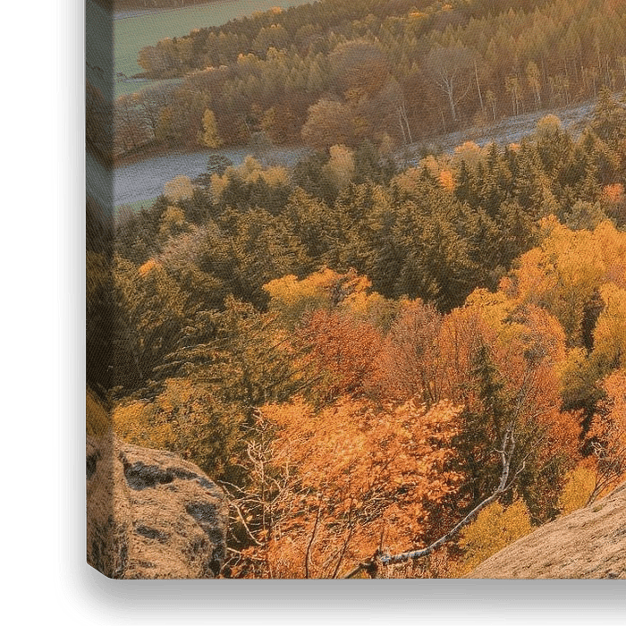 Die 42,7 m hohe Barbarine beim Pfaffenstein ist einer der bekanntesten freistehenden Felsen der Sächsischen Schweiz und gleichzeitig ein Wahrzeichen der Region sowie ein Naturdenkmal. Die Aufnahme zeigt den imposanten Felsen kurz nach Sonnenaufgang im Herbst.