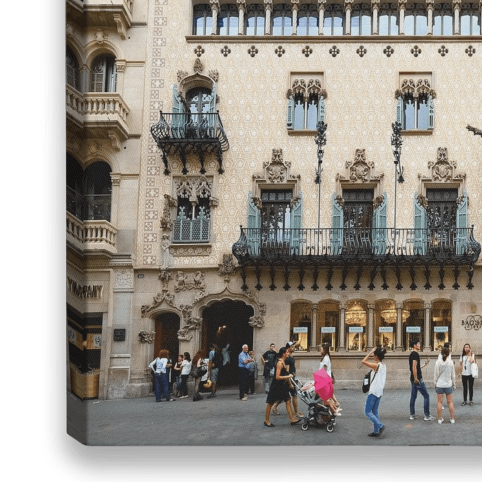 Bestelle das Foto Barcelona | Casa Batllo by Antoni Gaudi von Panorama Streetline als Reproduktion auf Leinwand, Alu-Dibond, als Poster, Fototapete oder Acrylglasbild.