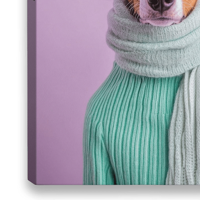 Ein eleganter Basenji präsentiert sich in stilvollem mintgrün, umhüllt von einem kuscheligen Schal. Seine großen, aufmerksamen Ohren und der feine, in sanften Erdtönen gehaltene Kopf strahlen Intelligenz und Neugier aus. Mit einem charmanten Blick wirkt er sowohl verspielt als auch kultiviert – ein wahrhaft einzigartiger Charakter in…