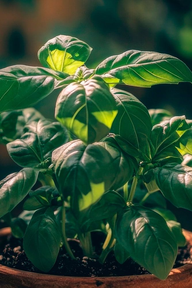 Ein lebendiger Basilikum in einem rustikalen Terrakotta-Topf verströmt frische Eleganz und bringt einen Hauch von Natur ins Zuhause. Die satten, grünen Blätter scheinen im sanften Licht zu leuchten und laden zum Kochen ein. Perfekt für die Küche, fügt er einen aromatischen Akzent hinzu und inspirierte dazu, kulinarische Köstlichkeiten zu kreieren.