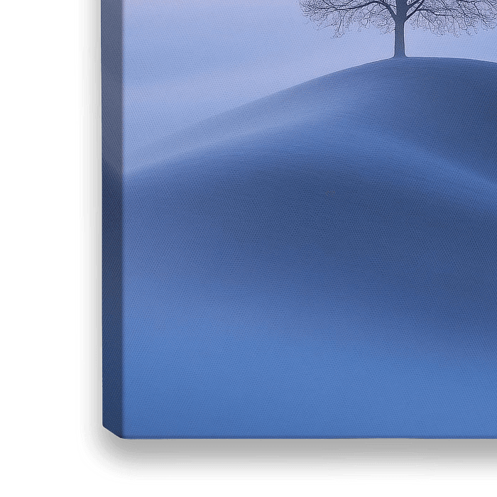 Dieses ruhige Bild zeigt einen einsamen Baum inmitten eines nebligen, sanft gewellten Hügels. Die sanften Farben des Himmels - eine Kombination aus Pastellrosa, Blau und Lila - schaffen eine beruhigende, fast verträumte Atmosphäre. Dieses Design strahlt Schlichtheit und Stille aus, perfekt für einen Raum, in dem Entspannung und Ruhe im…