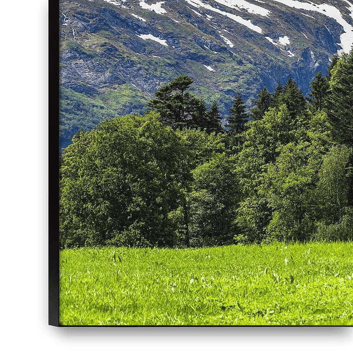 Bestelle dieses Landschafts-Wandbild Berg mit Schnee nahe Fjærland in Norwegen von Rico Ködder als Reproduktion auf Leinwand, Alu-Dibond, als Poster, Fototapete oder Acrylglasbild.