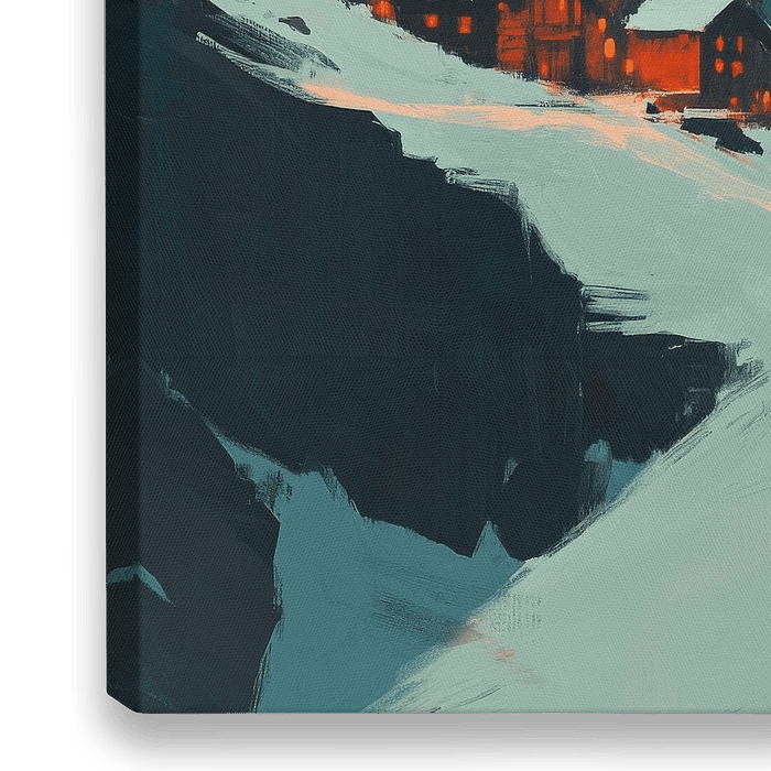 Ein verträumtes Bergdorf, sanft umhüllt von funkelndem Schnee und majestätischen Gipfeln, lädt zum Verweilen ein. Die warm leuchtenden Hütten strahlen Gemütlichkeit aus, während das goldene Licht der Nachmittagssonne die Landschaft sanft umarmt. Ideal für das Wohnzimmer, schafft dieses Kunstwerk eine einladende Atmosphäre und weckt…
