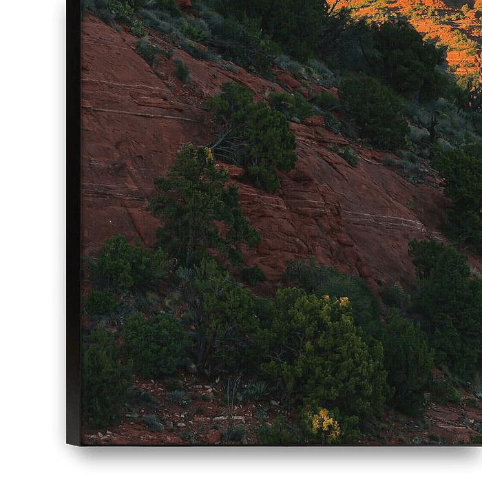 Ihre gewählte Kunst auf Leinwand, gespannt in einem Aluminiumrahmen. Schnell und einfach austauschbar für eine frische Ausstrahlung und ganz nach Ihren Wünschen.