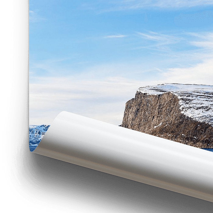 Bestelle dieses Landschafts-Wandbild Berge und Felsen im Winter nahe Hammerfest in Norwegen von Rico Ködder als Reproduktion auf Leinwand, Alu-Dibond, als Poster, Fototapete oder Acrylglasbild.