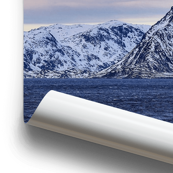 Bestelle dieses Landschafts-Wandbild Berge und Felsen im Winter nahe Øksfjord in Norwegen von Rico Ködder als Reproduktion auf Leinwand, Alu-Dibond, als Poster, Fototapete oder Acrylglasbild.