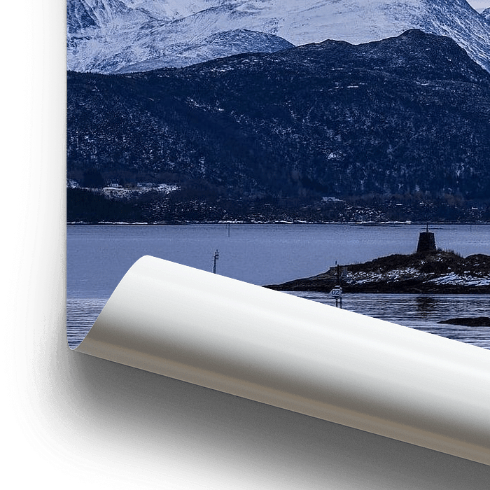 Bestelle dieses Landschafts-Wandbild Berge und Felsen im Winter nahe Torvik in Norwegen von Rico Ködder als Reproduktion auf Leinwand, Alu-Dibond, als Poster, Fototapete oder Acrylglasbild.