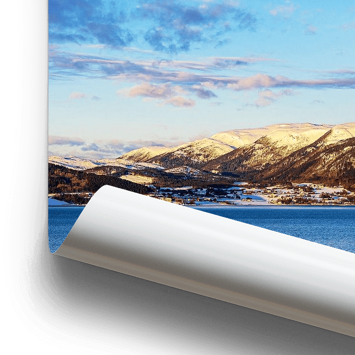 Bestelle dieses Landschafts-Wandbild Berge und Felsen im Winter nahe Trondheim in Norwegen von Rico Ködder als Reproduktion auf Leinwand, Alu-Dibond, als Poster, Fototapete oder Acrylglasbild.