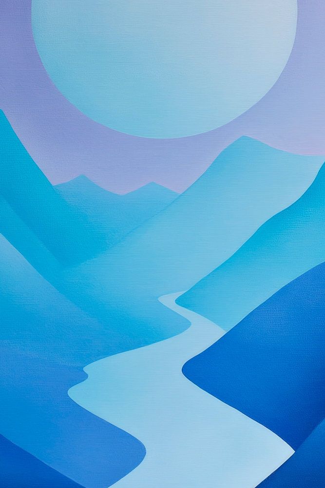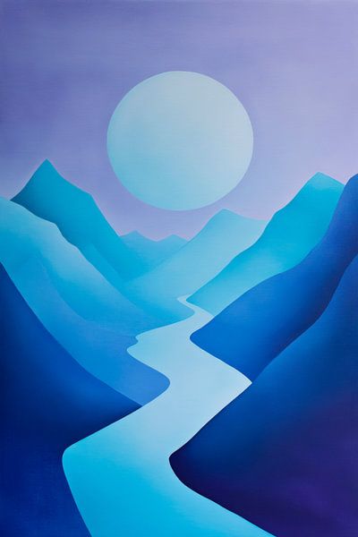 In sanften Blautönen entfaltet sich eine friedliche Berglandschaft, durchzogen von einem klaren Fluss, der in Richtung des strahlenden Mondes fließt. Die harmonische Farbkombination strahlt Ruhe und Gelassenheit aus, perfekt geeignet für das Schlafzimmer, wo sie einen entspannenden Rückzugsort schafft. Ein wahrer Blickfang für…