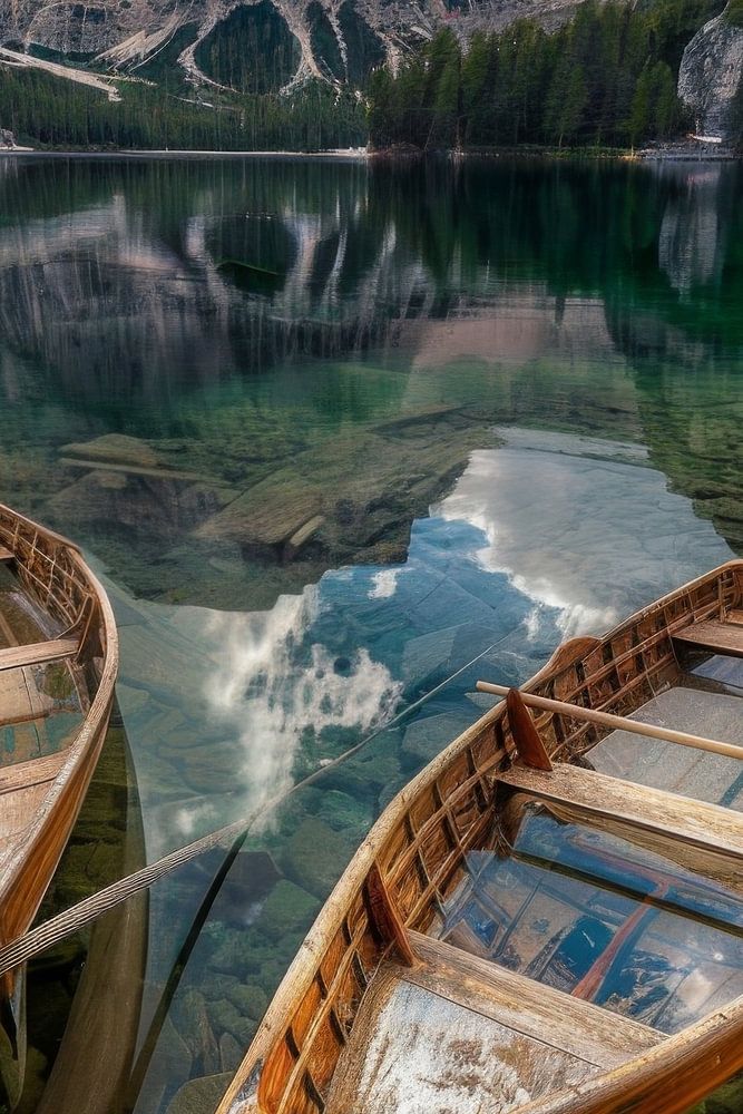 Dieses atemberaubende Bild zeigt einen klaren Bergsee in den Dolomiten, umgeben von majestätischen Bergen und üppigen Wäldern. Die zwei traditionellen Holzboote im Vordergrund und das kristallklare Wasser schaffen eine ruhige und idyllische Atmosphäre. Perfekt für Liebhaber von Naturmotiven, Bergen und Landschaftsfotografie, bringt dieses Kunstwerk die friedliche Schönheit der Dolomiten in Ihre Wohnräume. Ideal für Wohnzimmer oder Büros, es ist eine wunderbare Ergänzung für jede Sammlung von Naturfotografien und Landschaften.