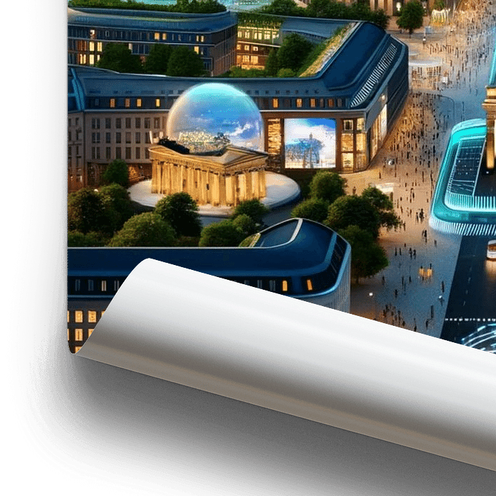 Das Bild "Visionäres Berlin" lädt den Betrachter auf eine Reise in eine Zukunft ein, in der Berlin seine geschichtsträchtigen Wurzeln in eine Ära bahnbrechender Technologien und nachhaltiger Architektur überführt. Das Brandenburger Tor, ein historisches Wahrzeichen, steht nun im Zentrum futuristischer Infrastrukturen und begrünter…