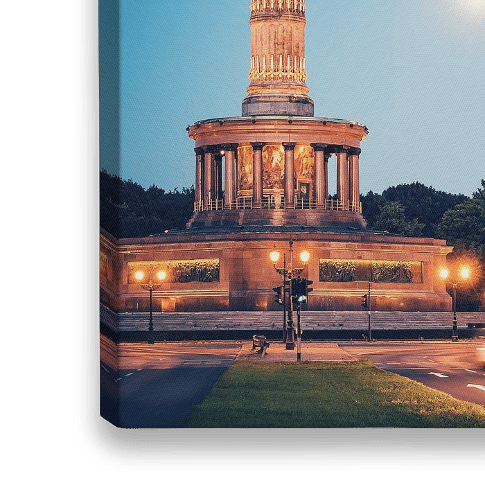 Abenddämmerung im Berliner Tiergarten: Ein Blick aus der Altonaer Strasse auf die Siegessäule mit der goldenen Viktoria.