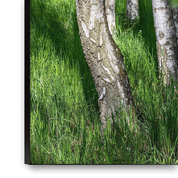 Im Frühling stehen einige Birken im hohen grünen Gras