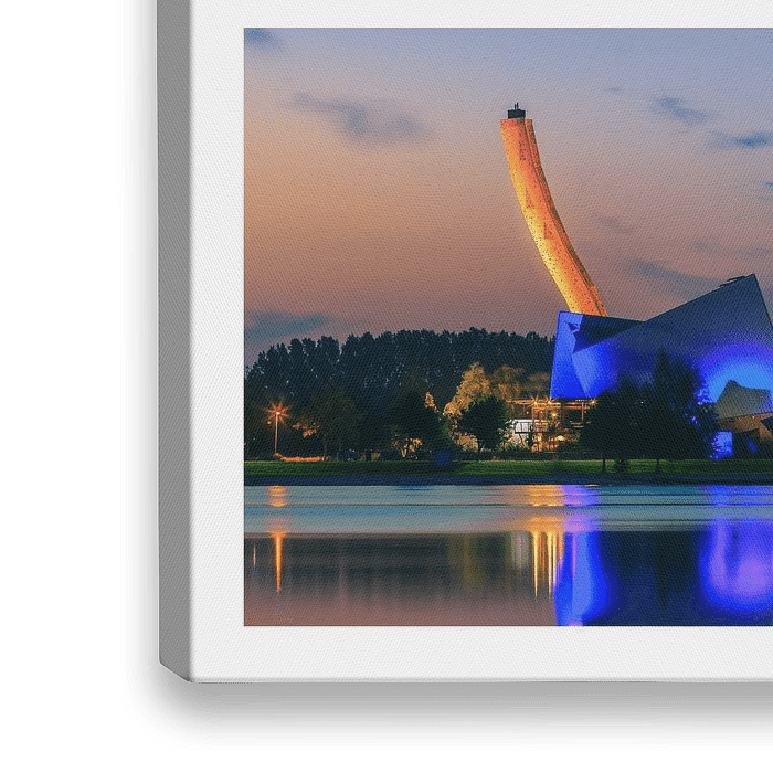 A four image collage from the sunset at Climbing Center Bjoeks, located at sportpark Kardinge in Groningen, The Netherlands. The amazing Excalibur tower at 37m tall this is the world's current tallest free-standing climbing wall.