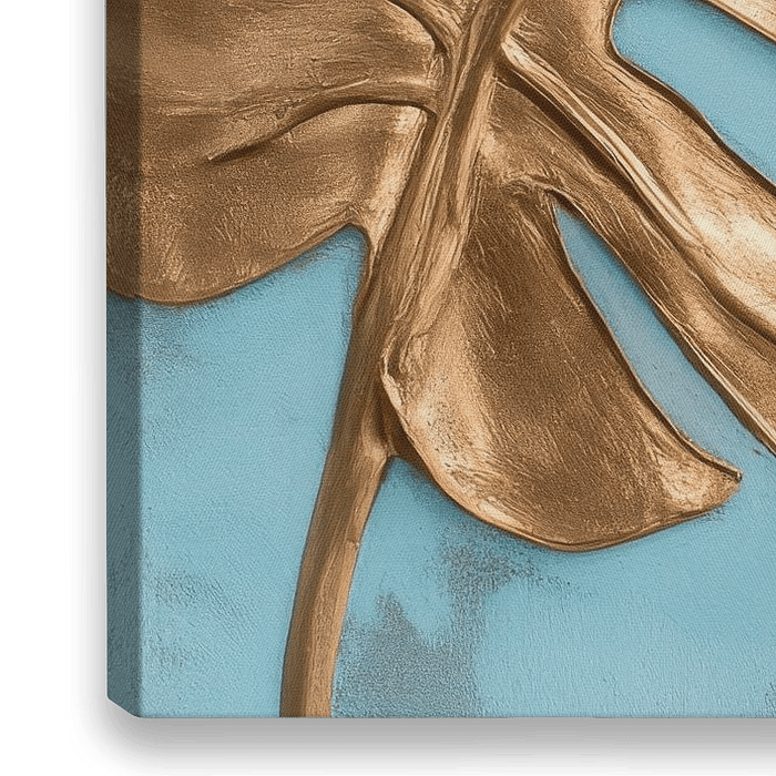 Ein harmonisches Spiel von Farben und Texturen entfaltet sich, mit prächtig geformten Blättern, die ein Gefühl von tropischer Eleganz vermitteln. Das goldene Blatt strahlt luxuriösen Glanz aus, während das tiefgrüne Pendant mit seiner natürlichen Schattierung einen erfrischenden Kontrast bietet. Ein Meisterwerk der Natur, eingefangen in…