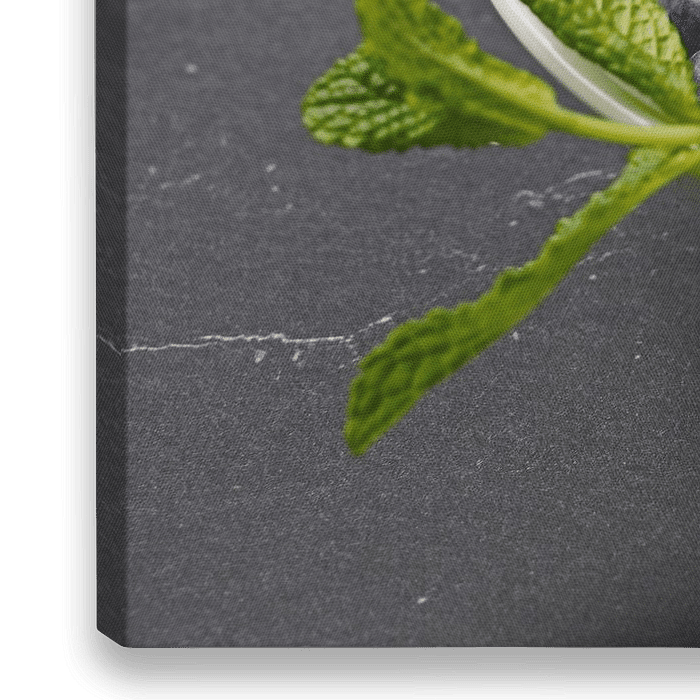 Blaubeeren mit Pfefferminzblättern in einer Schale