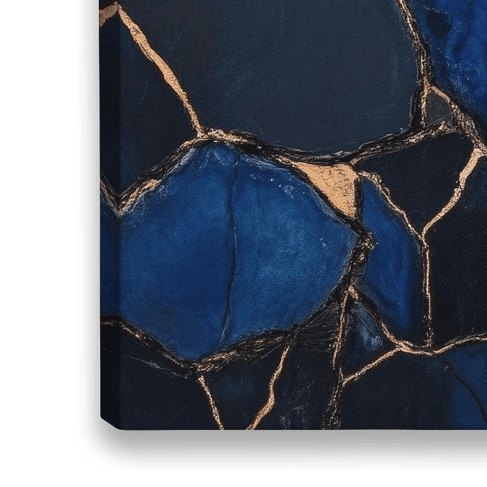 Bestelle dieses abstrakte Wandbild Blaue Mosaikstein-Oberfläche mit Goldfugen von Poster Art Shop als Reproduktion auf Leinwand, Alu-Dibond, als Poster, Fototapete oder Acrylglasbild.
