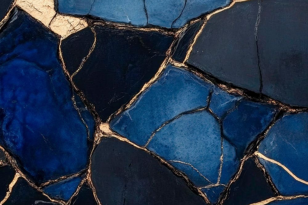 Blaue Mosaikstein-Oberfläche mit Goldfugen von Poster Art Shop