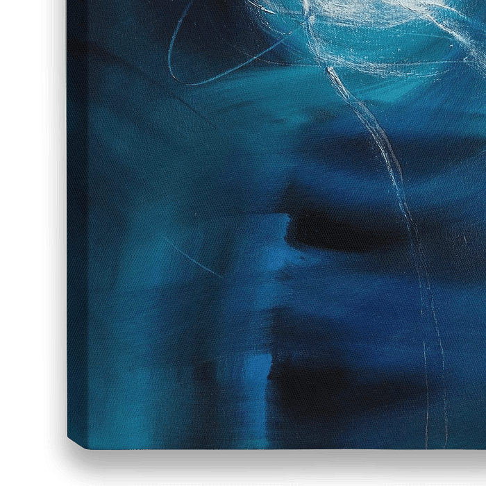 Bestelle dieses abstrakte Wandbild Blauer Lichtertanz von Annette Schmucker als Reproduktion auf Leinwand, Alu-Dibond, als Poster, Fototapete oder Acrylglasbild.