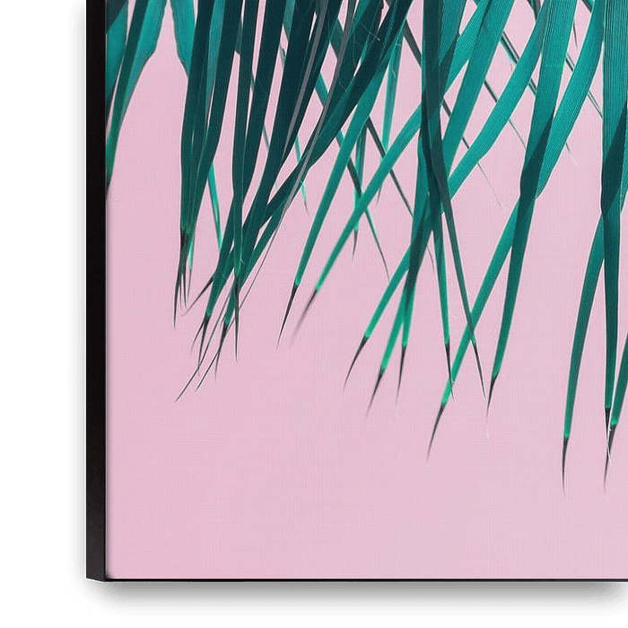 Den Sommer im Halbschatten hoher Palmen verbringen ... und dabei dem Rauschen des Mittelmeeres lauschen. Die blaugrünen Palmblätter sollen die Lust auf Sommer, Sonne und Entspannung am Strand wecken. Der rosafarbene Himmel steht als Symbol für schöne Reiseziele und das entspannende Leben an der Mittelmeerküste.
