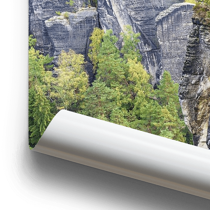Bestelle dieses Landschafts-Wandbild Blick auf Felsen und Bäume in der Sächsische Schweiz von Rico Ködder als Reproduktion auf Leinwand, Alu-Dibond, als Poster, Fototapete oder Acrylglasbild.