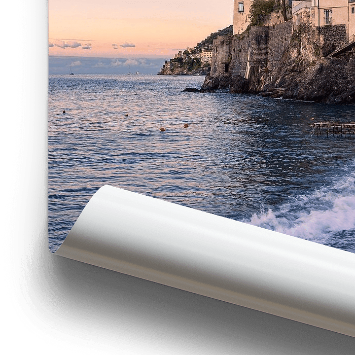 Bestelle das Foto Blick auf Minori an der Amalfiküste in Italien von Rico Ködder als Reproduktion auf Leinwand, Alu-Dibond, als Poster, Fototapete oder Acrylglasbild.