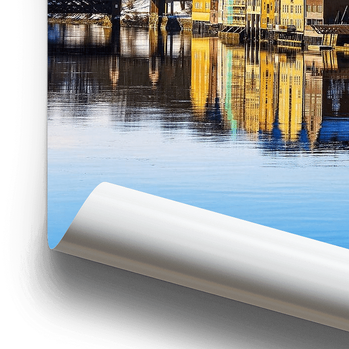 Bestelle das Foto Blick auf bunte Häuser am Fluss Nidelva in der Stadt Trondheim von Rico Ködder als Reproduktion auf Leinwand, Alu-Dibond, als Poster, Fototapete oder Acrylglasbild.