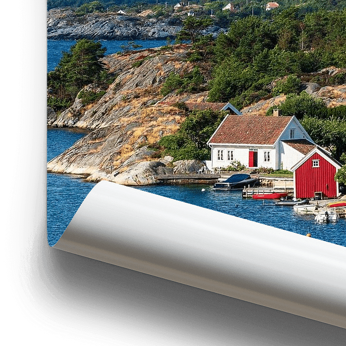 Bestelle das Foto Blick auf das Dorf Brekkestø in Norwegen von Rico Ködder als Reproduktion auf Leinwand, Alu-Dibond, als Poster, Fototapete oder Acrylglasbild.
