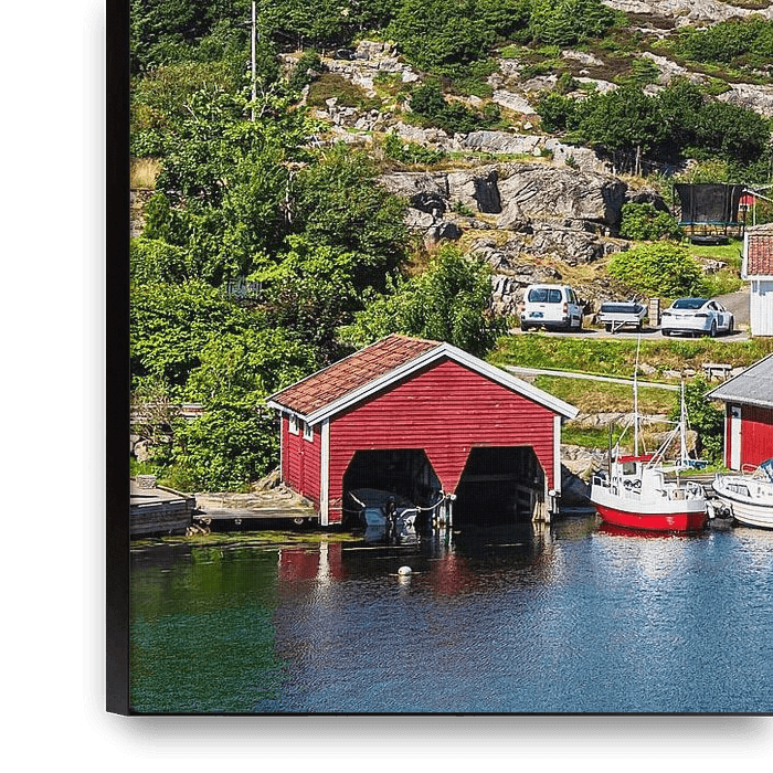 Bestelle das Foto Blick auf das Dorf Farestad in Norwegen von Rico Ködder als Reproduktion auf Leinwand, Alu-Dibond, als Poster, Fototapete oder Acrylglasbild.