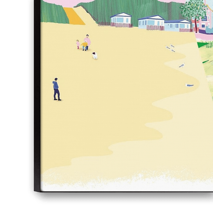 Am Strand sehen Sie Hunde, die berühmten Strandhäuser, Kite-Surfer und die Promenade mit der St. Andreaskirche.