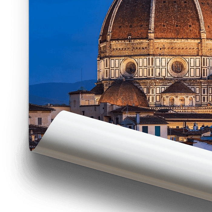 Bestelle das Foto Blick auf die Kathedrale Santa Maria del Fiore zur Blauen Stunde von Rico Ködder als Reproduktion auf Leinwand, Alu-Dibond, als Poster, Fototapete oder Acrylglasbild.
