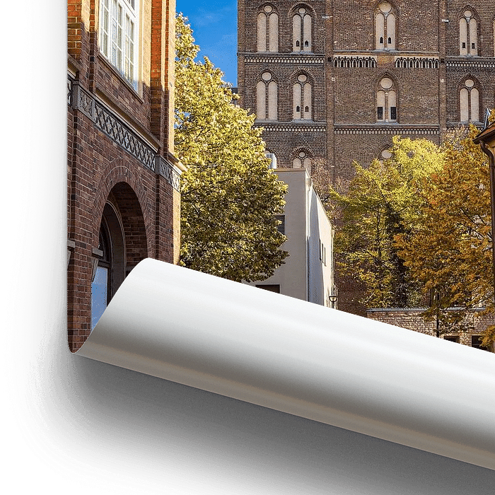 Bestelle das Foto Blick auf die Marienkirche in der Hansestadt Rostock im Herbst von Rico Ködder als Reproduktion auf Leinwand, Alu-Dibond, als Poster, Fototapete oder Acrylglasbild.