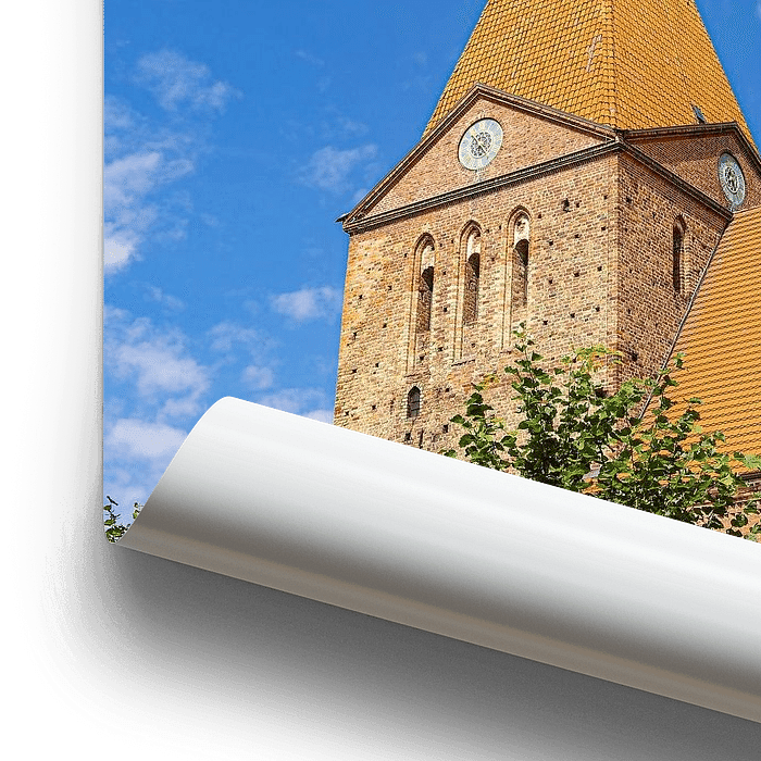 Bestelle das Foto Blick auf die St.-Paulus-Kirche in der Stadt Schwaan von Rico Ködder als Reproduktion auf Leinwand, Alu-Dibond, als Poster, Fototapete oder Acrylglasbild.